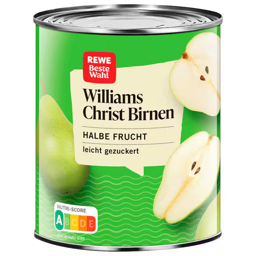 REWE Beste Wahl Williams Christ Pear Halves 455g – Juicy, tender pear halves of the Williams Christ variety, carefully preserved for a naturally sw...